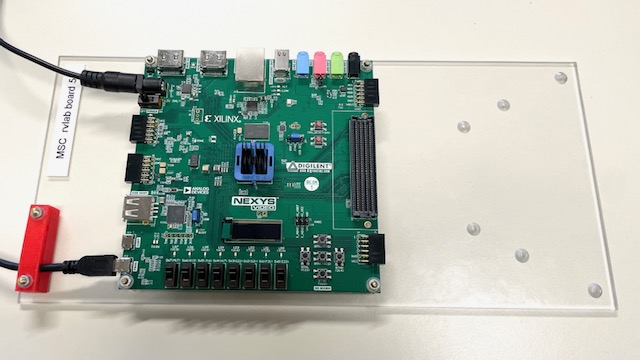 The RISC-V Lab uses the Digilent Nexys Video board with the Xilinx Artix-7 XC7A200T FPGA (see Resources).